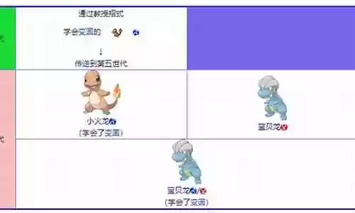 实际上因为有双蛋群的设定,所以遗传招式能够跨越好几个蛋群也是有可能的,这个也被称为连锁遗传。甚至还可以同时遗传多个蛋招式,具体操作方法要根据不同的宝可梦而定。