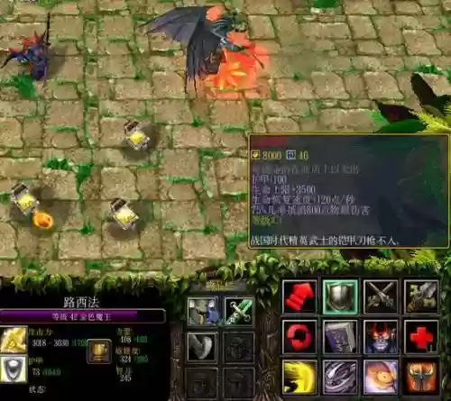 3、右边的黑翼有魔法盾,四散的法术技能,禁魔禁普通攻击,残血后会变身黑龙,攻击很高。