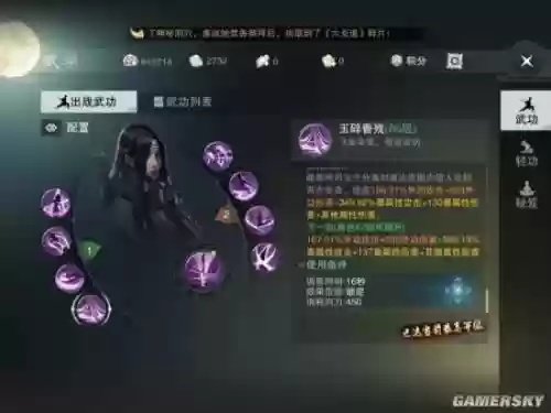 3、技能加点推荐 对于暗香这一职业,在技能加点上,前期可以考虑全劲或全体加点,以增加输出或提高生存能力。到了游戏后期,随着暴击属性的提升,可以转向全敏加点,以提高暴击率和攻击速度。当然,敏劲或敏体混合加点也是不错的选择,能在保证输出的同时,增加一些生存能力。