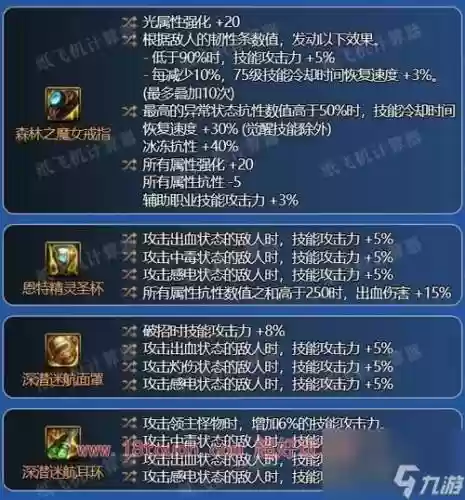 传说中的天下第一套,和改版前属性一样。实际上改版后加成并没有那么出众了,属性以光强为核心,6%的光属性白字中规中矩,不值得因此就只堆光强,附带一些力智加成和特效,上衣或下装触发的圣光罩可以一定程度改善输出环境。