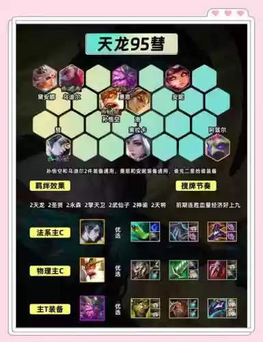阵容搭配 深渊群怪:建议体系为彗星驱动+天穹游侠+主C,天穹游侠负责初步聚怪、破盾和输出。 记忆战场辅助:建议体系为彗星驱动+天穹游侠+增幅紫苑,用于攻略特定BOSS。 记忆战场主C:建议体系为月光+神恩+天穹游侠,通过速切流进行BOSS攻略。