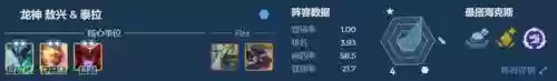 四龙九五到底有多强?我们看数据就知道了,钻石以上分段登场率高达100%,平均排名3.93,吃分率高达58.5%以及21.7%,这个数据简直用夸张来形容。纵观各个版本没有任何一套阵容能够这么稳定吃分。